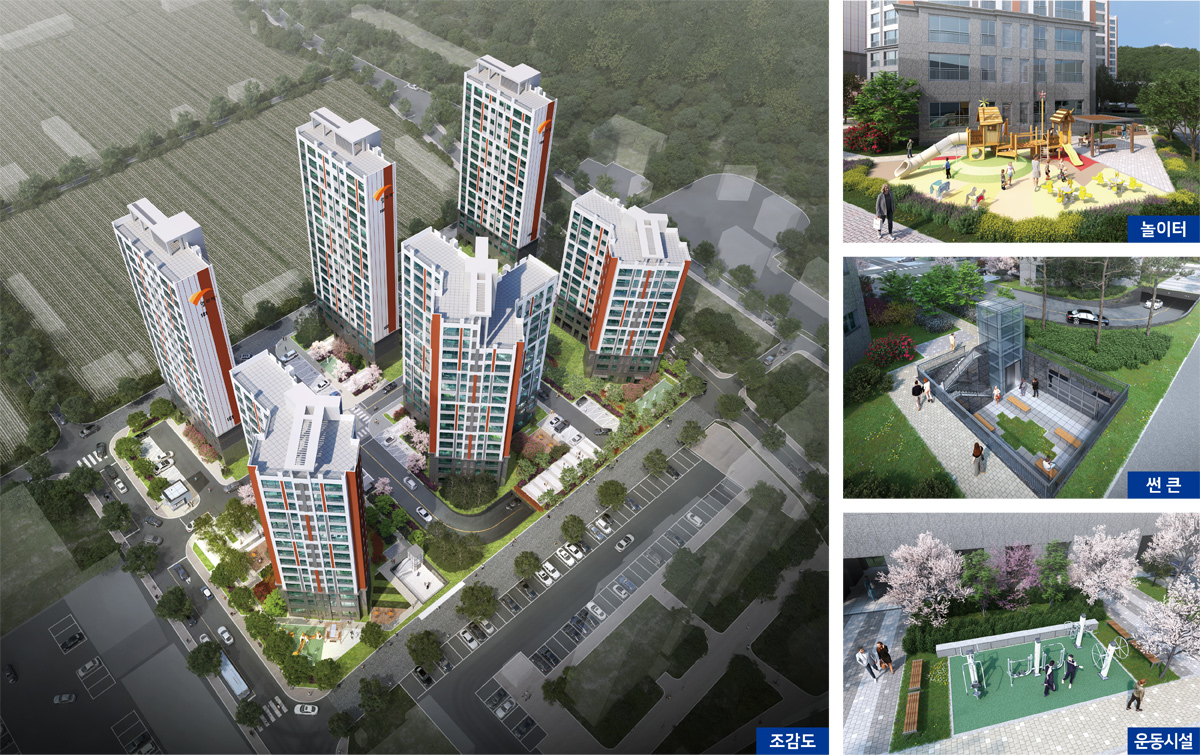 - 주동형태, 창호형태, 측벽디자인, 외부색채, 로고사인 위치, 외벽마감, 식재 및 포장 계확은 인허가 과정이나 최종 사업계획 내용, 법규 변경, 시공 시 현장여건, 상품개선 등에 따라 변경사항이 발생할 수 있습니다.